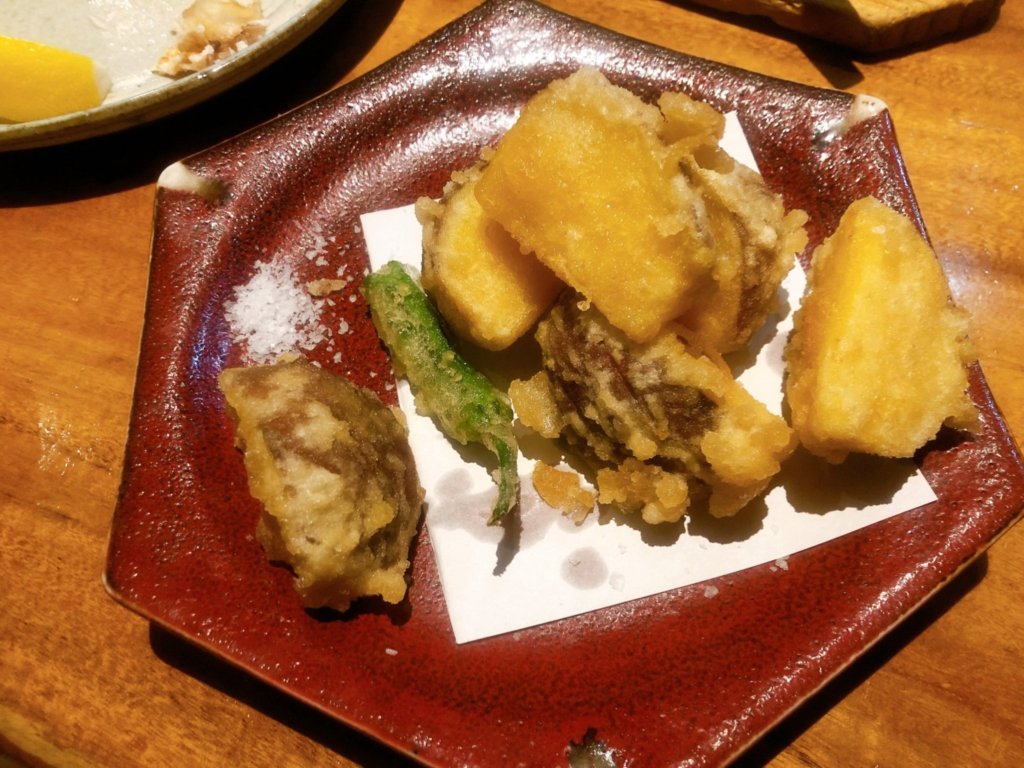 揚げ物も多くのラインナップがありましたが、今回は安納芋の天ぷらを注文。